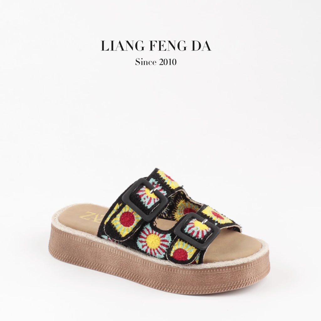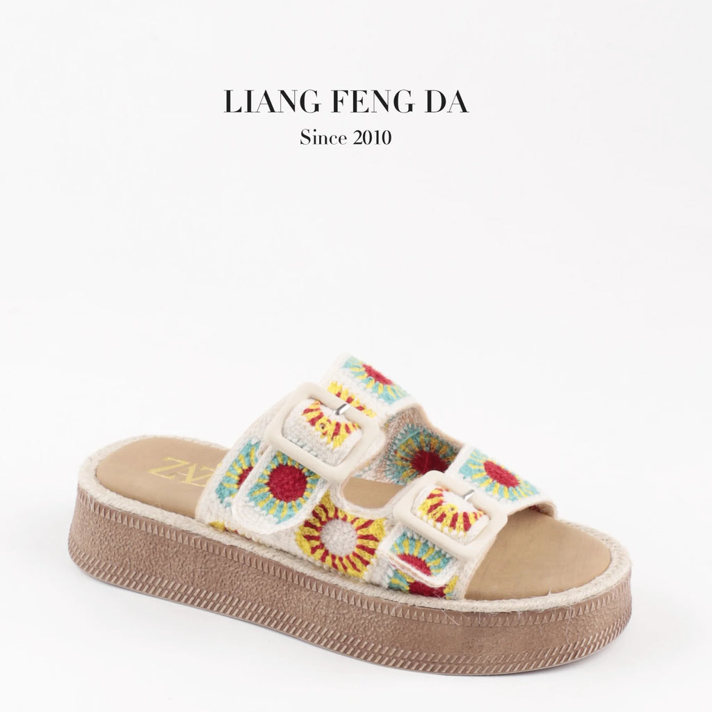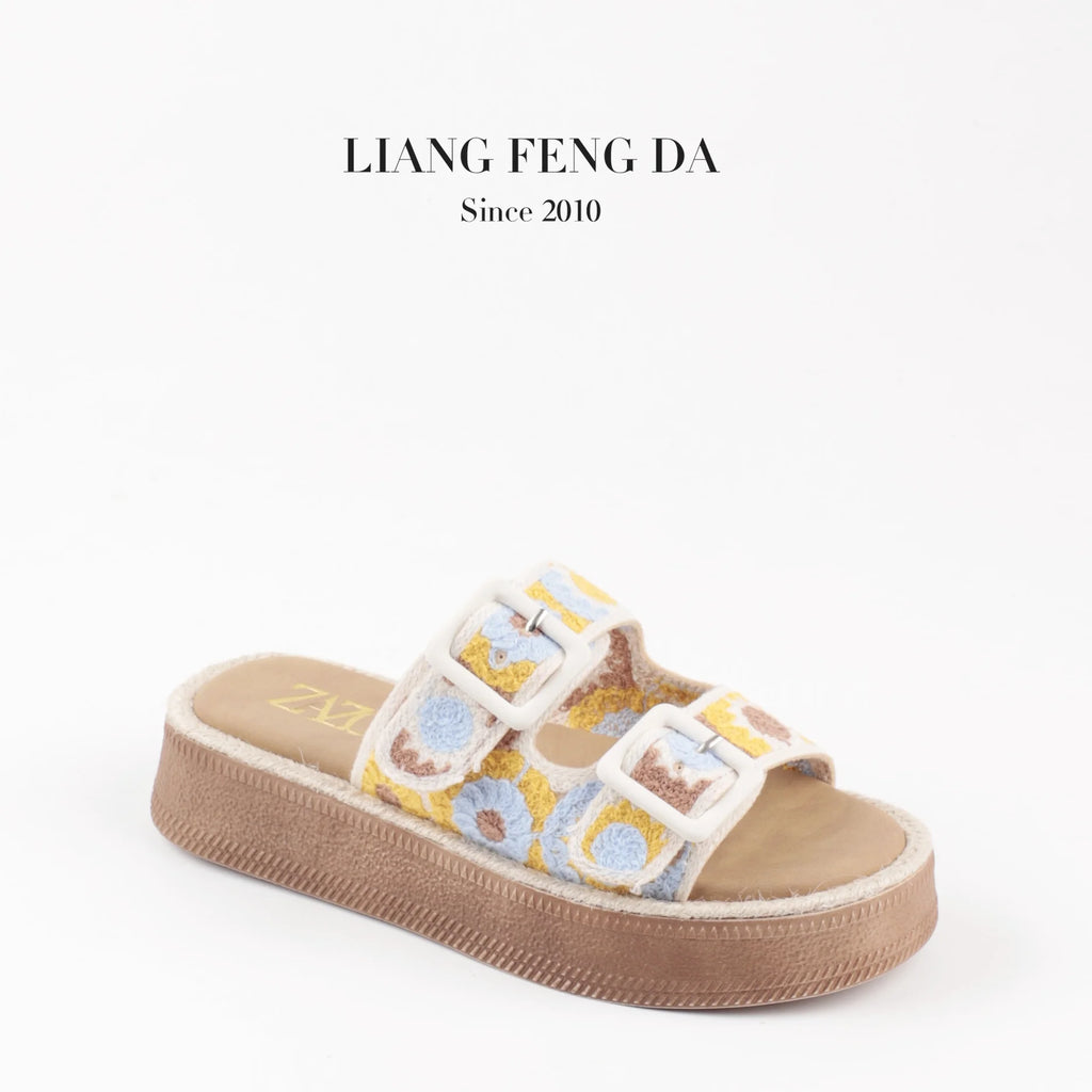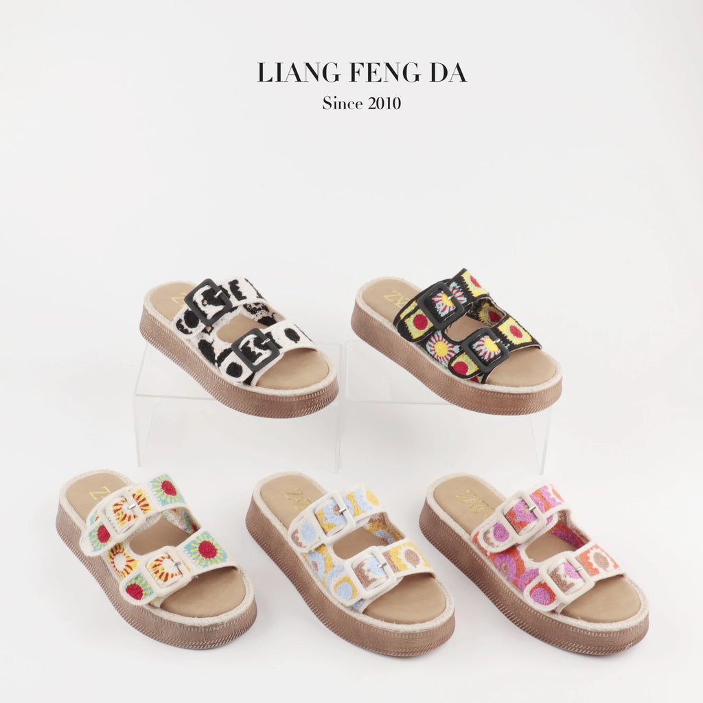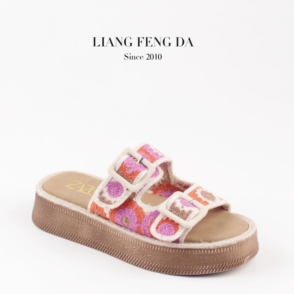 Designer Sandals Customized Support Women Outer Wear Summer 2024 New Double Strap Embroidered Sandals Soft Bottom