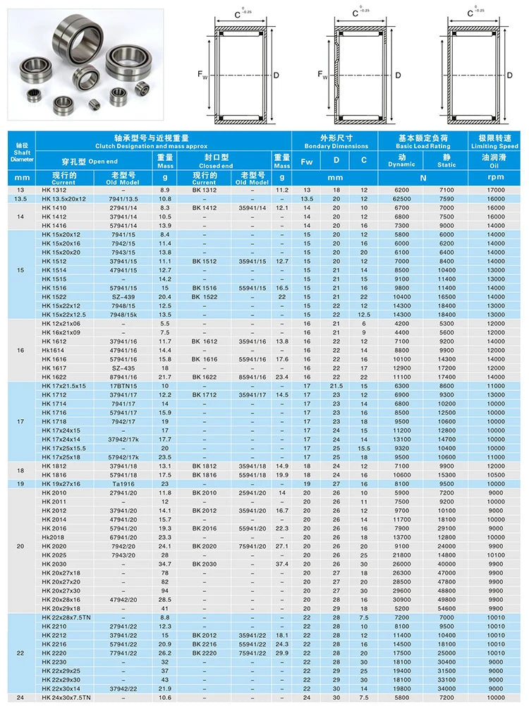 Service | OEM | Raceway type | needle roller bearing |