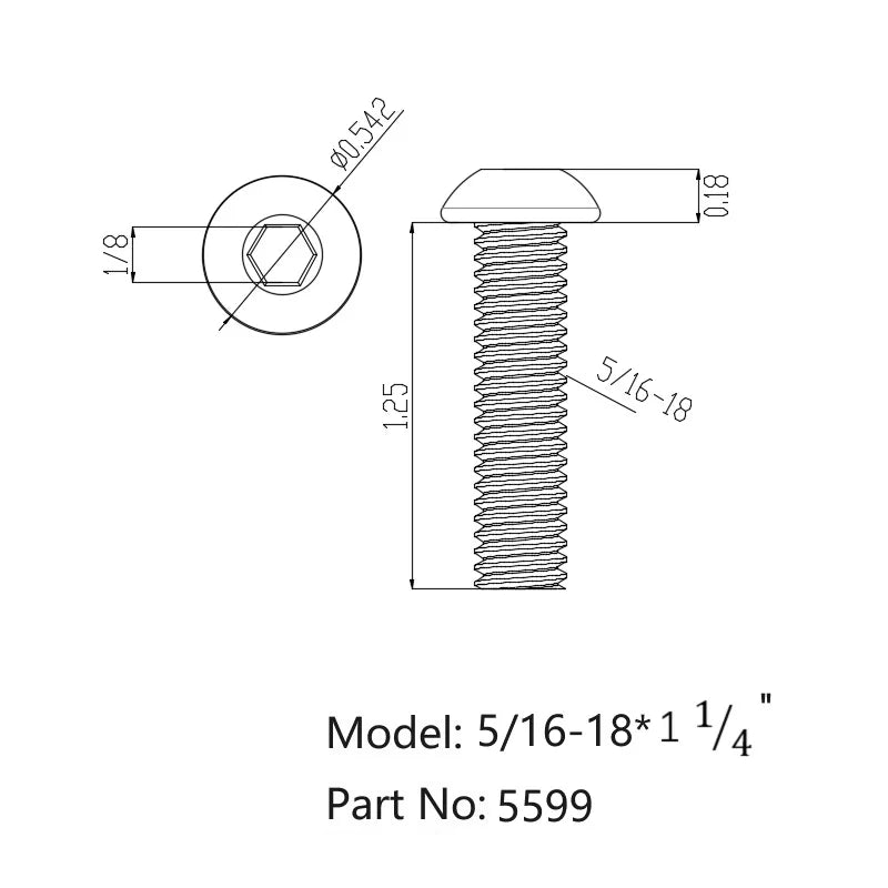 | Shape | Button Head Socket Cap | size | 5/16-18*1-1/4" |