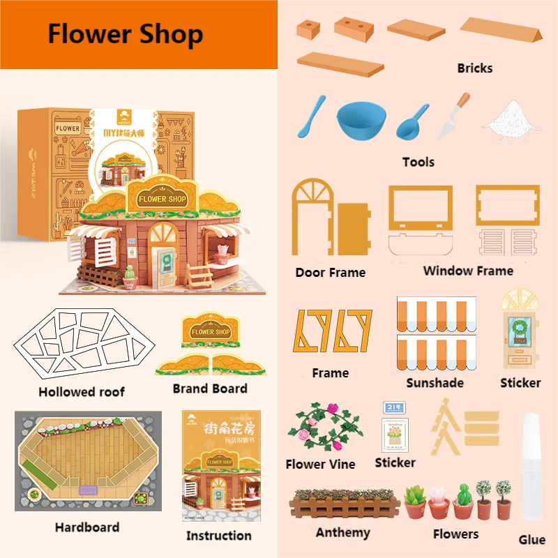| Product name | Building Block Kids Flower Shop Craft Set with Concrete Brick Stem Toy | Packing | Color Box, Carton |