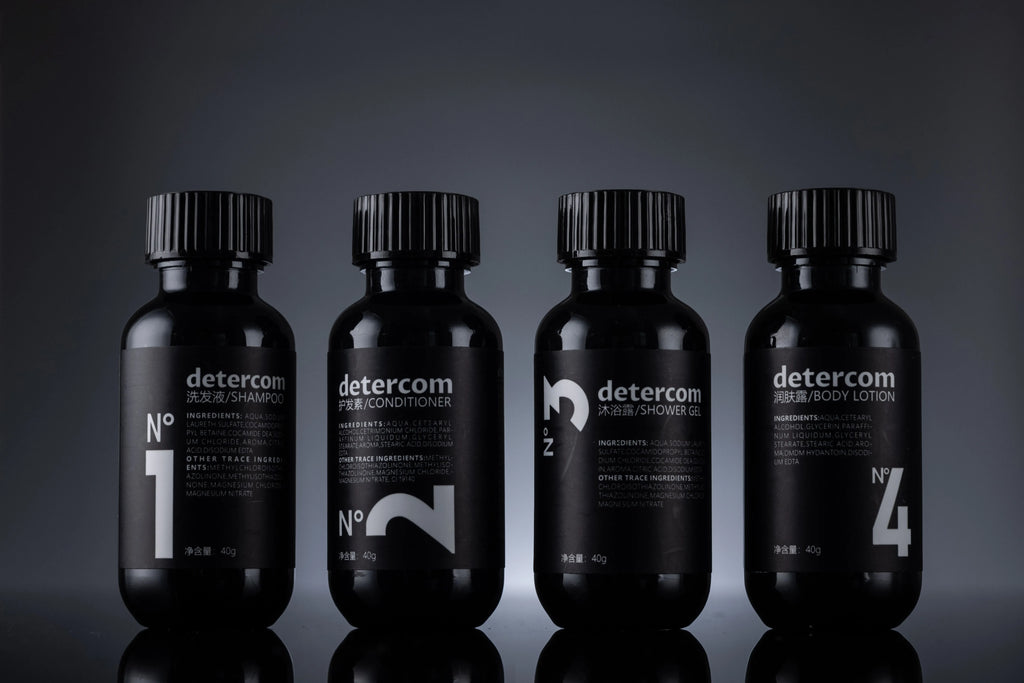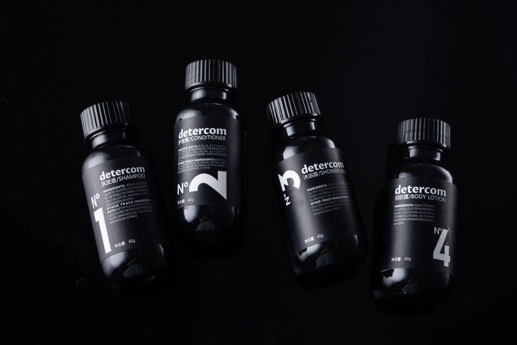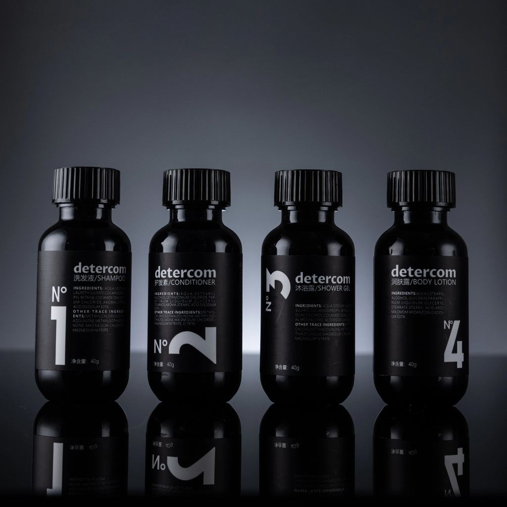 Eco-Friendly Hotel Amenities Bathroom Set Shampoo Conditioner Body Gel Body Lotion Bottles with Custom Logo for Travelers