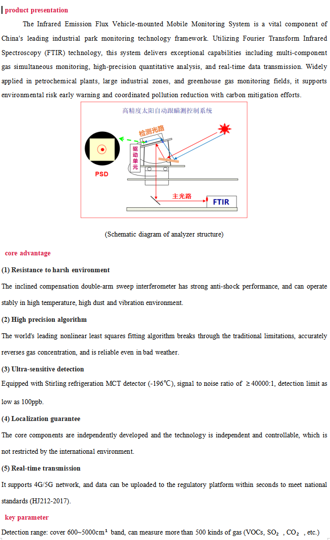 | Solar occultation infrared emission flux vehicle-mounted mobile system | environment | Solar occultation infrared emission flux vehicle-mounted mobile system | scientific research |